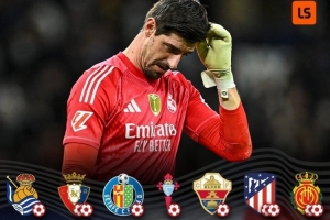而数据统计显示,皇马已连续7场西甲联赛无法实现零封,共计丢了10球。