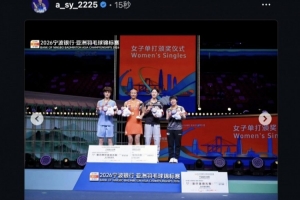 如果只有我一个人,绝对无法达到今天的高度。感谢今天奉献了精彩比赛的王祉怡选手;感谢一直陪伴在我身边的监督、教练、体能老师和视频分析老师;也要衷心感谢始终不遗余力支持赞助商。最后,由衷感谢一直以来为我加油的粉丝们。